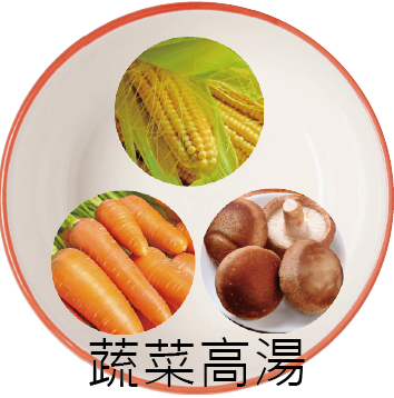 成分:蔬菜湯(胡蘿蔔、金黃玉米、鮮香菇)、白米、芥菜(長年菜)、地瓜、甘藍、胡蘿蔔、金針菇、山茶茸、非基改豆腐、小米