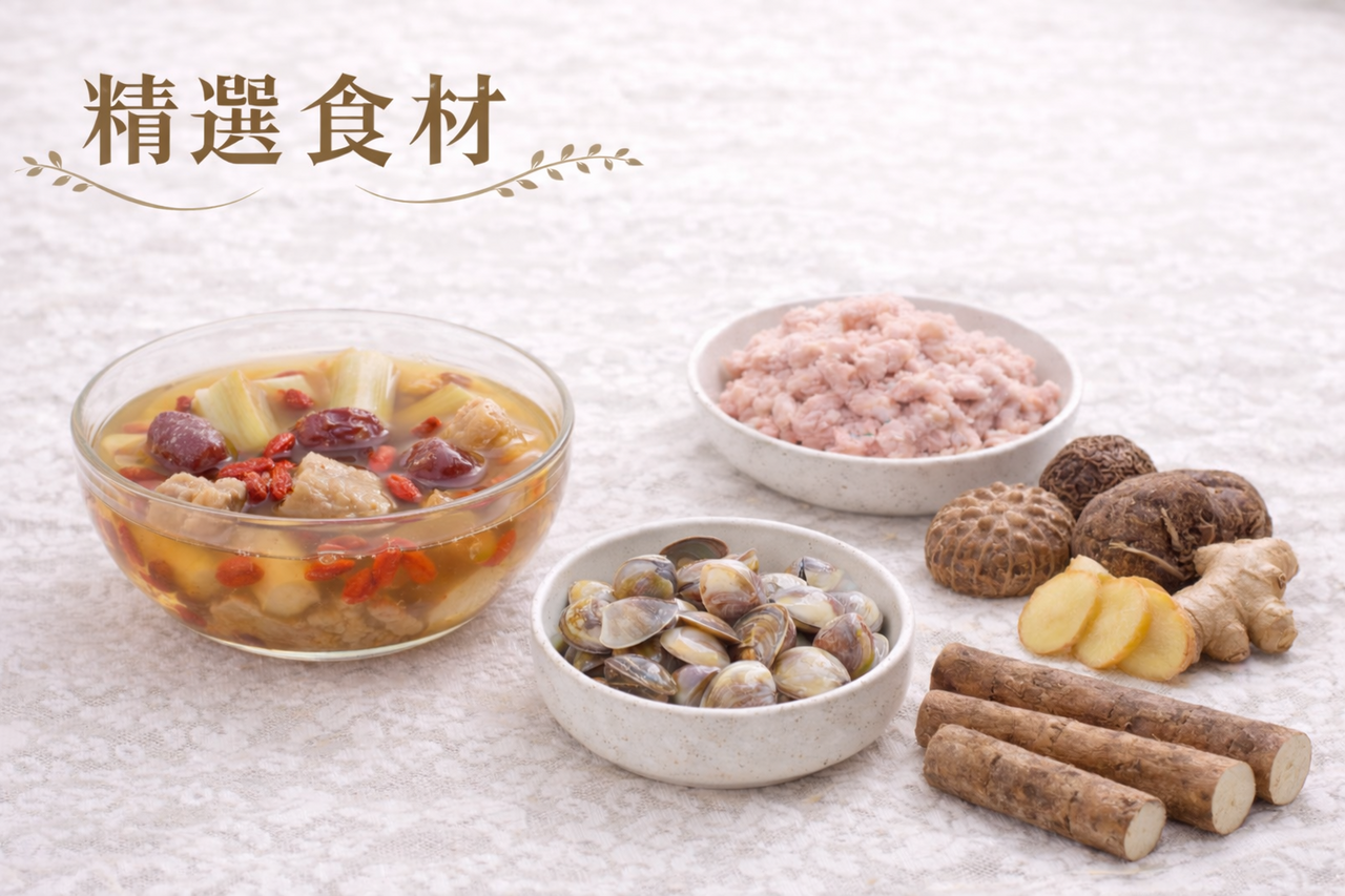 成 分: 甘蔗紅棗枸杞雞湯、白米、雞絞肉、文蛤、牛蒡、乾香菇、老薑