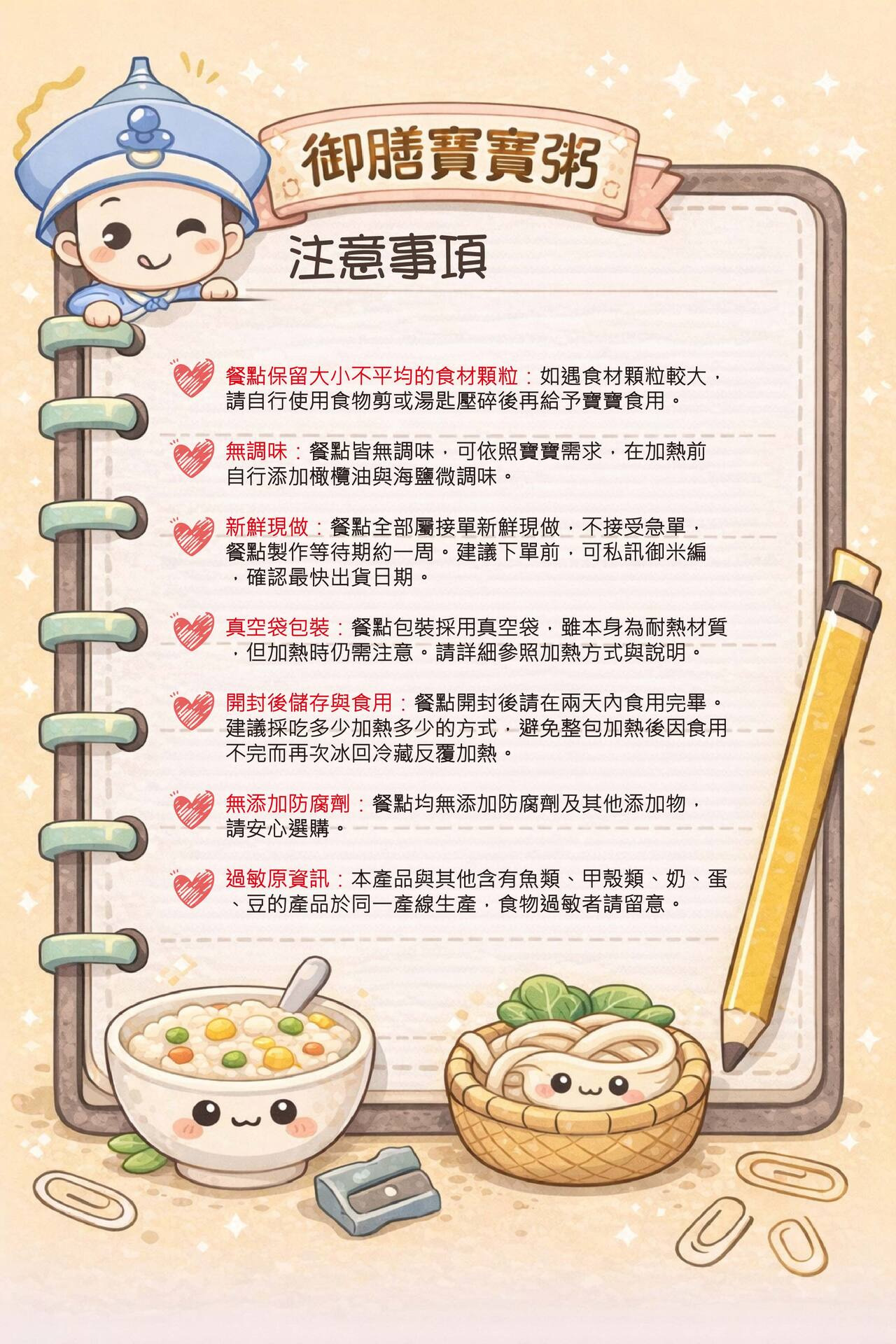 齡: 7個月~24個月寶寶(寶貝的咀嚼吞嚥能力皆不同,請仔細評估寶貝吞嚥能力後再給予食用)