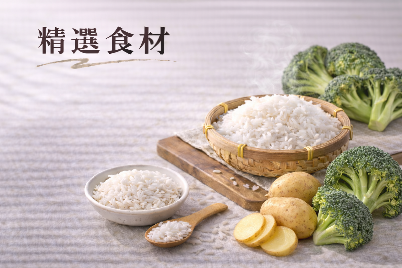 成 分: 開水、白飯、馬鈴薯、青花菜